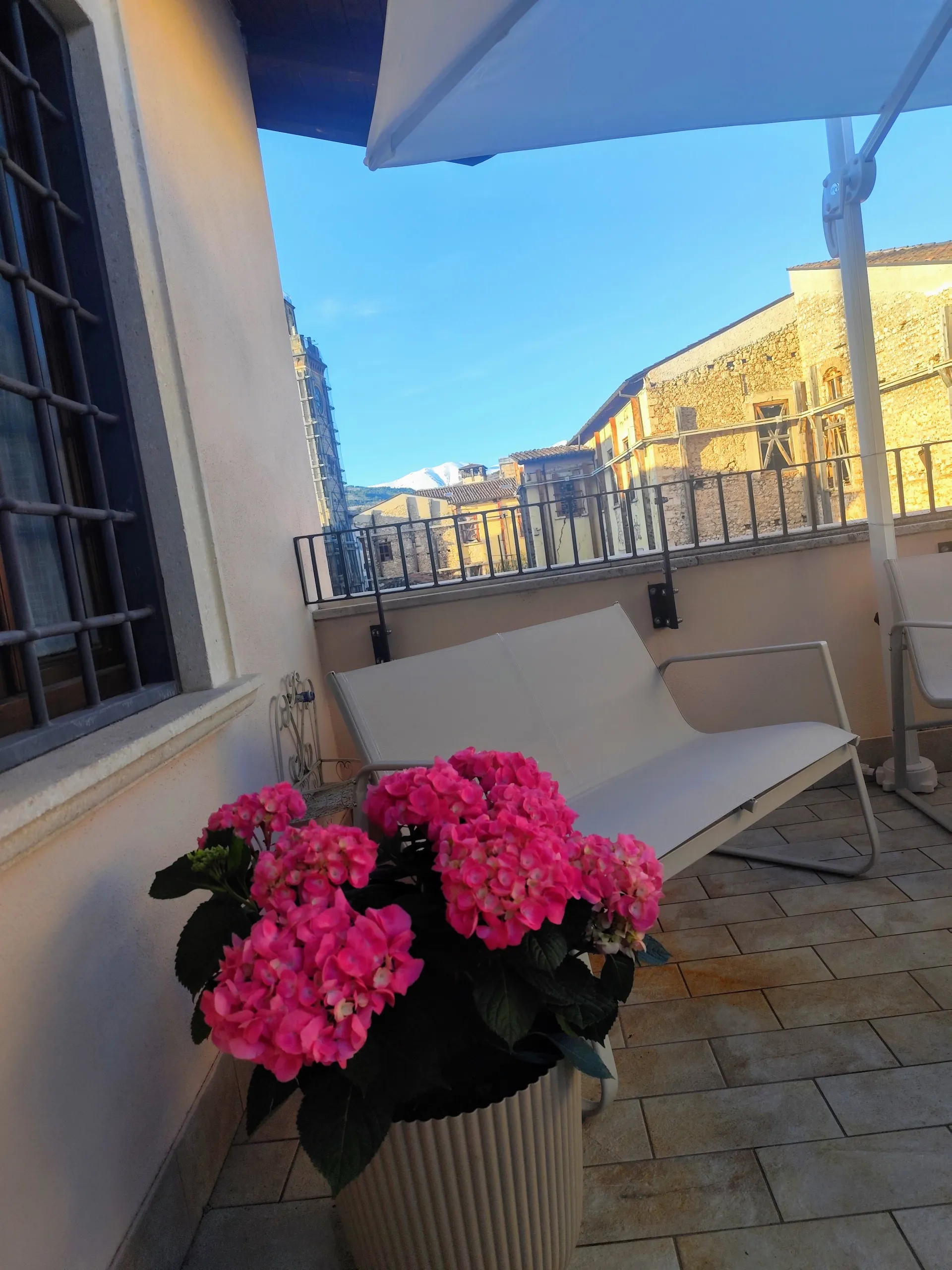 Concediti una pausa relax nel terrazzo attrezzato per godere di una vista mozzafiato tra campanili e cortili medievali.